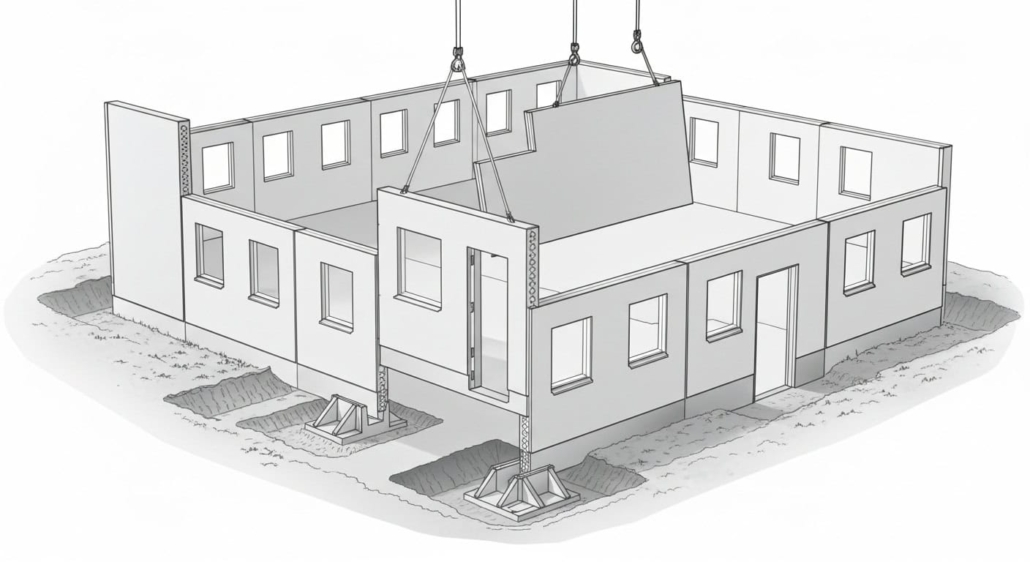 Płyty ścienne hale inwentarskie warstwowe grubości 15-20 cm z rdzeniem termoizolacyjnym. Współczynnik przenikania ciepła U = 0,25 W/m²K. Alternatywnie ściany kurtynowe z płyt PCV lub poliwęglanu. Bramy segmentowe 4×4 m dla maszyn rolniczych.